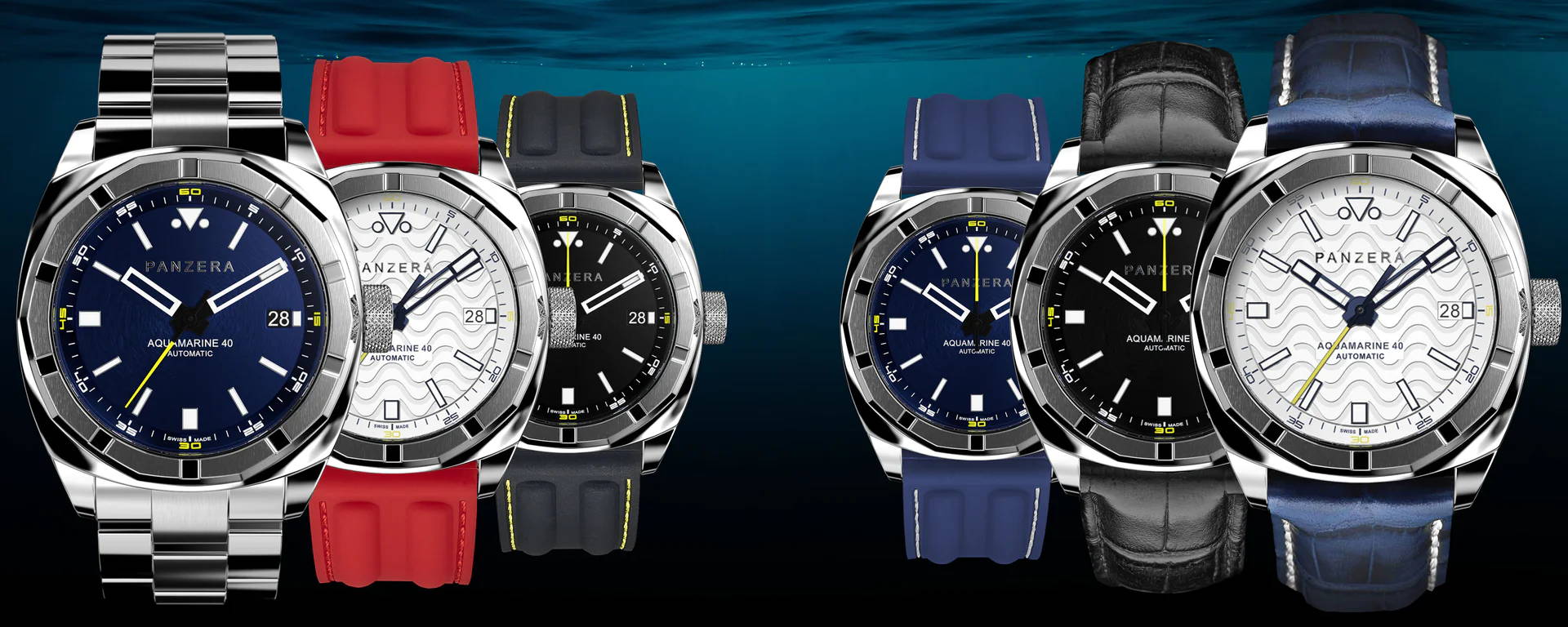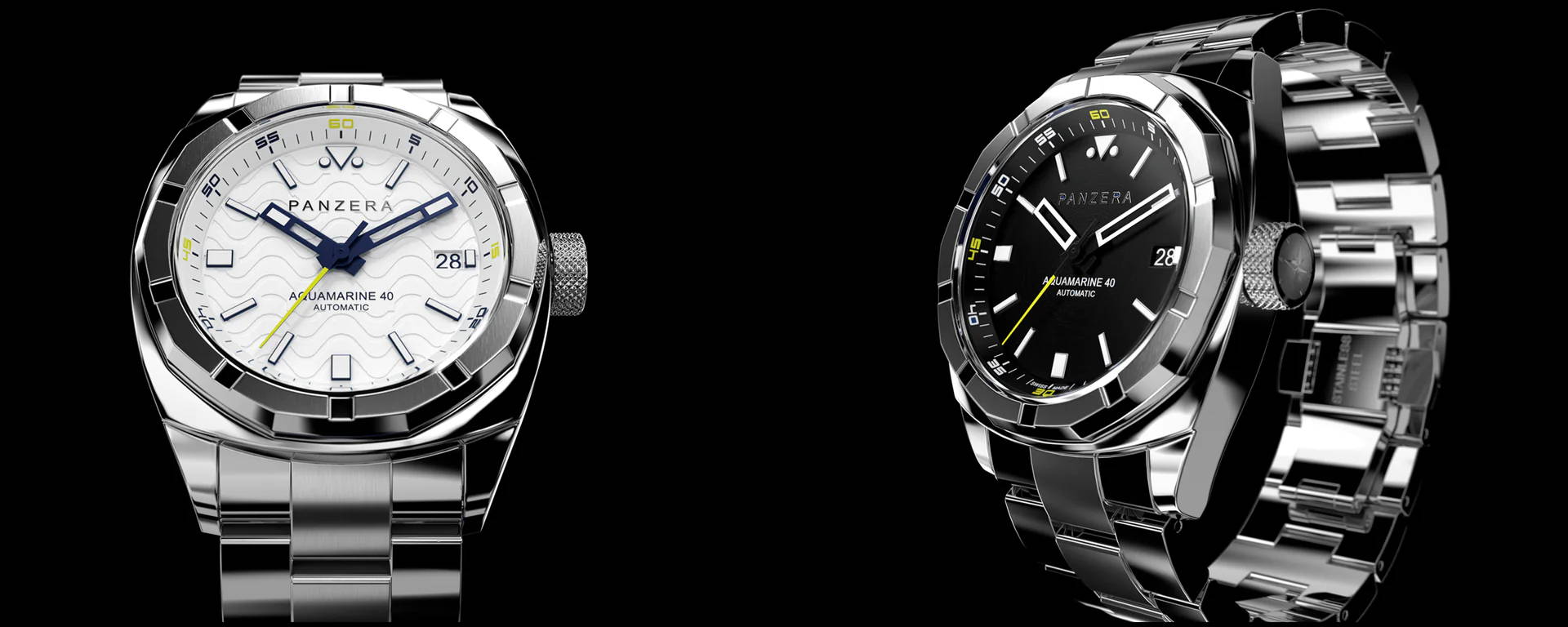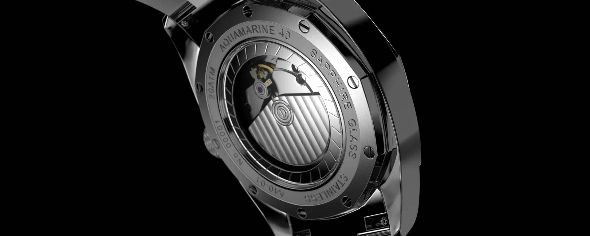 El reloj Aquamarine 40 presenta el movimiento automático Landeron cal.L24 como el corazón que late dentro de cada reloj.