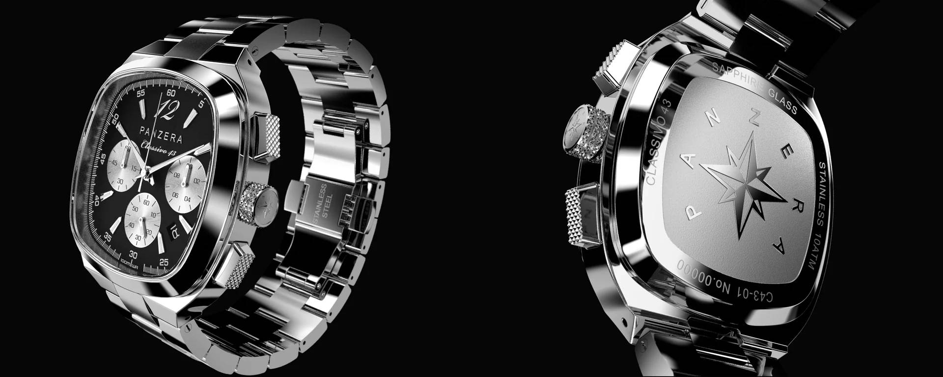 Como todos los relojes PANZERA, el Classivo 43 tiene un corazón resistente, con resistencia al agua de 100 M, movimiento a prueba de golpes, caja sólida de acero inoxidable y cristal de zafiro a prueba de rayones. Este reloj de lujo puede acompañarlo a lugares donde otros relojes de vestir más tímidos no lo harían.